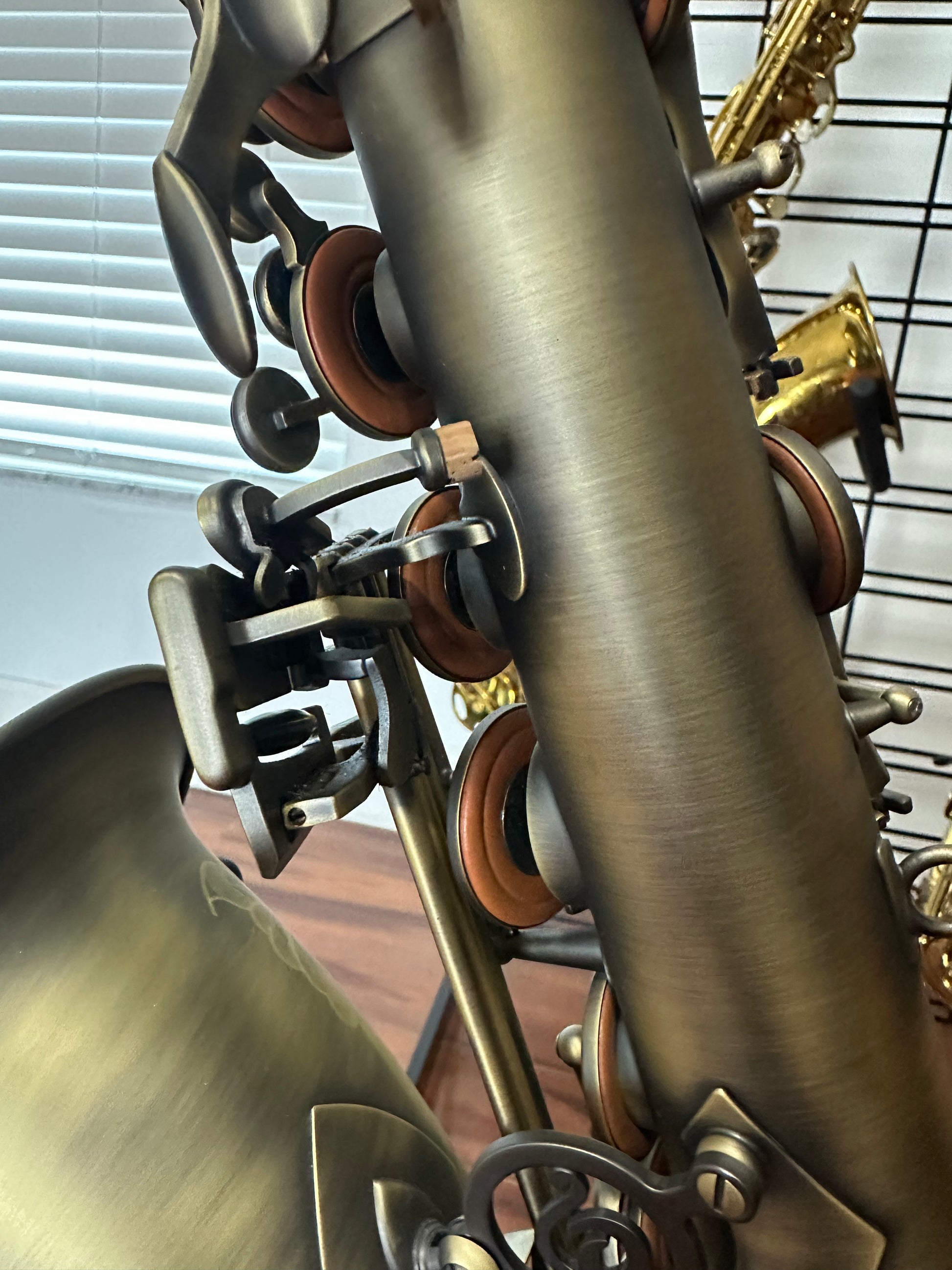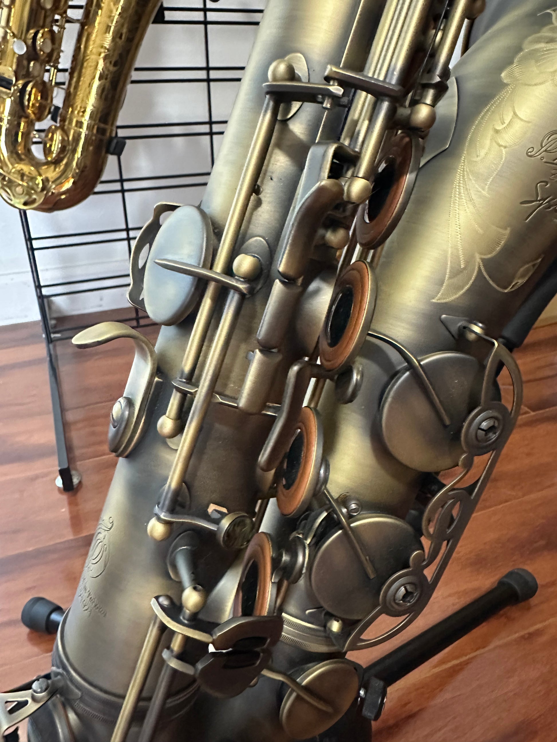 This tenor stands out with it’s beautiful dark vintage finish, offering modern feel while capturing the essence of that classic tenor look and sound.