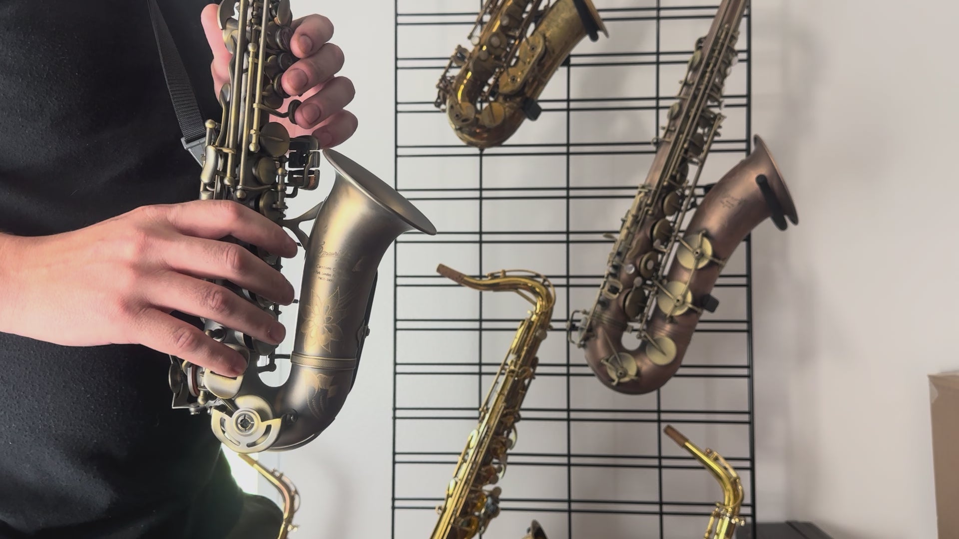 This P. Mauriat curved soprano is not merely a novelty, it is a seriously good soprano! Very comfortable to play, good intonation, and a cute yet professional appearance. It features the dark vintage finish with abalone key tocuhes.